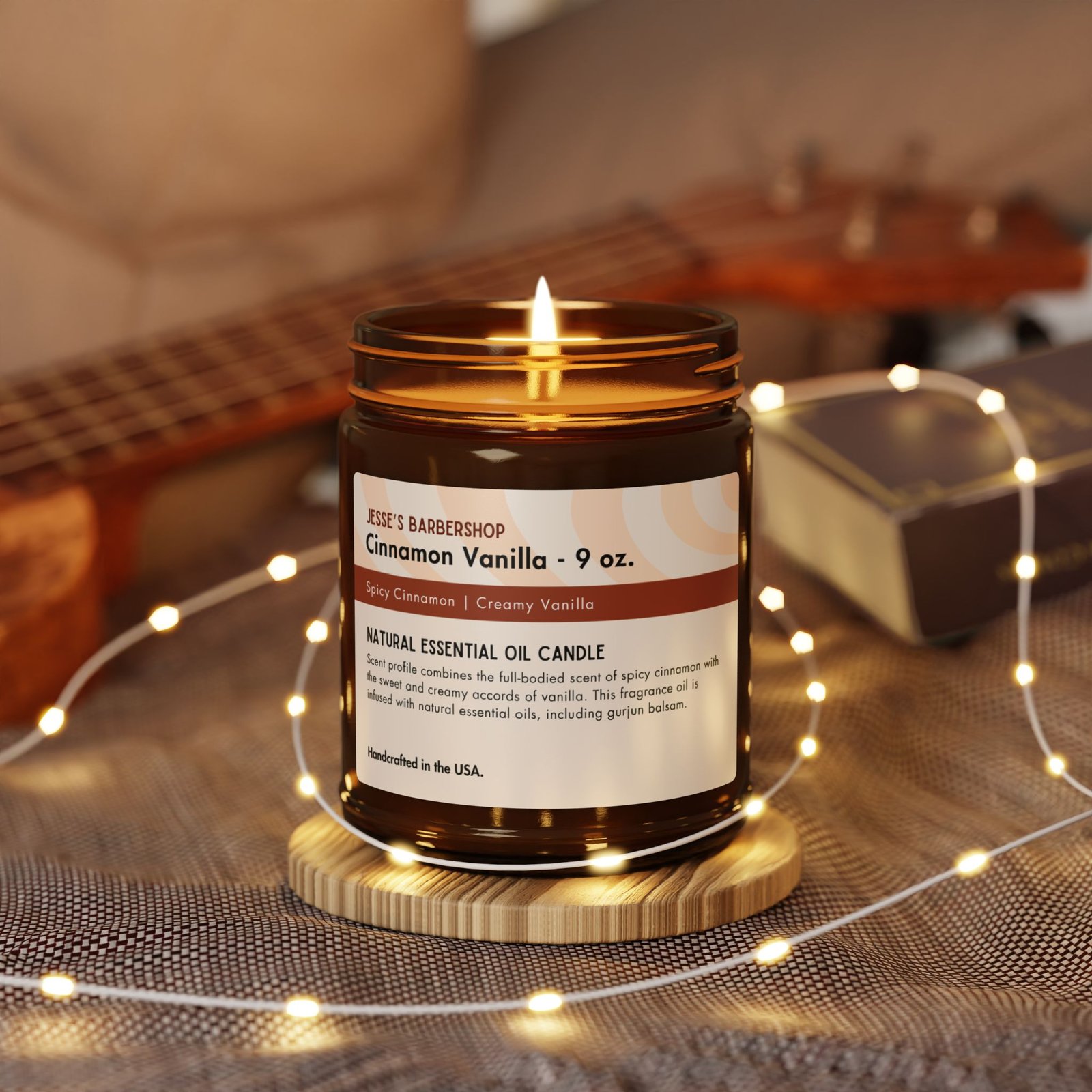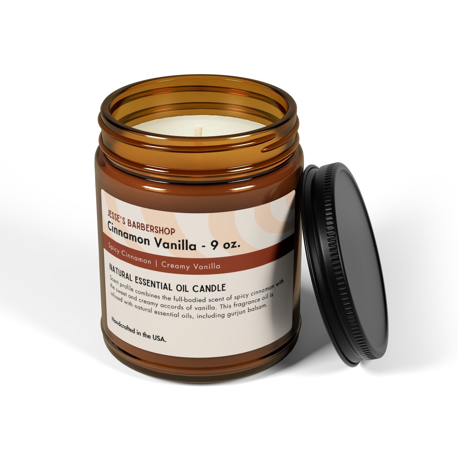 Escape the everyday with the warm and comforting aroma of Jesse’s Barber Shop’s Cinnamon Vanilla Natural Scented Candle. This 9-ounce candle creates a cozy and inviting atmosphere with its rich blend of cinnamon and vanilla. Hand-poured with a 100% natural soy wax blend and a 100% cotton wick, it provides a clean, even burn that fills your space with a soothing and delightful fragrance. Presented in an amber glass jar, this candle adds a touch of warmth and elegance to your home décor.